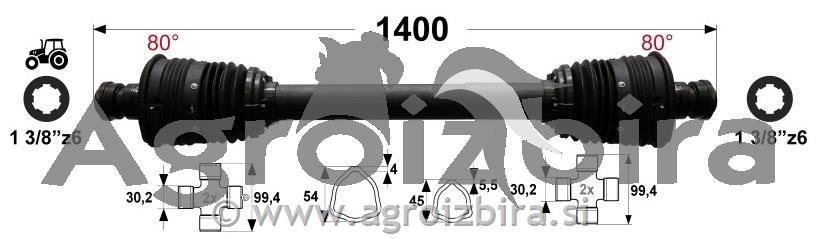 KARDAN T5 L=1400 mm DIREKTNI Z DVEMA ZGLOBOMA 80°