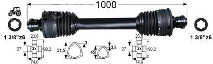 KARDAN PRIKLJUČKA T4 ŠIROKOKOTNI NA OBEH STRANEH L=1000mm 80° SPT