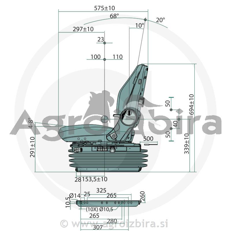 - Zračno vzmeten sedež z 12-voltnim kompresorjem